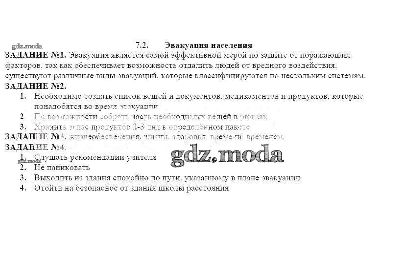 ОТВЕТ на задание № 7.2 Рабочая тетрадь по ОБЖ 8 класс Смирнов