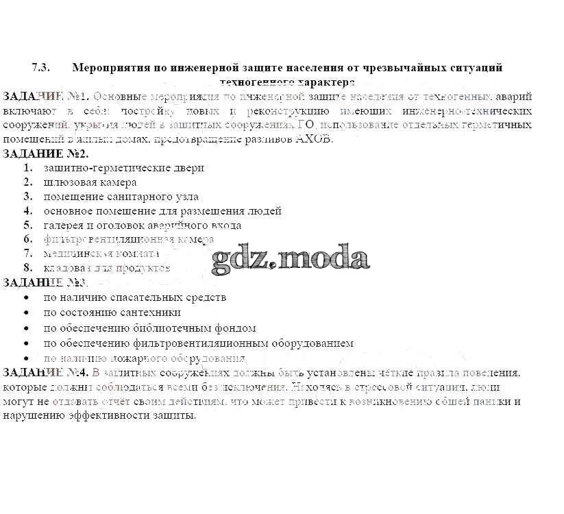 ГДЗ решение к заданию № 7.3 ОБЖ 8 класс рабочая тетрадь Смирнов А.Т. Просвещение 2013 ФГОС бесплатно на гдз.мода!