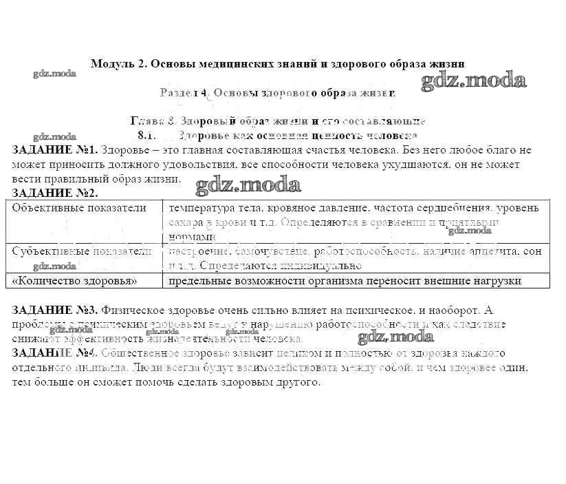 ОТВЕТ на задание № 8.1 Рабочая тетрадь по ОБЖ 8 класс Смирнов