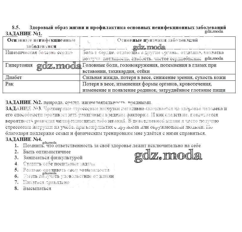 ГДЗ решение к заданию № 8.5 ОБЖ 8 класс рабочая тетрадь Смирнов А.Т. Просвещение 2013 ФГОС бесплатно на гдз.мода!