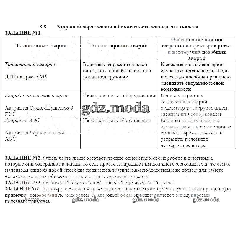 ОТВЕТ на задание № 8.8 Рабочая тетрадь по ОБЖ 8 класс Смирнов