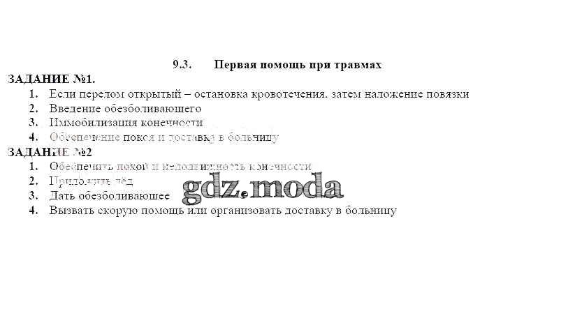 ОТВЕТ на задание № 9.3 Рабочая тетрадь по ОБЖ 8 класс Смирнов