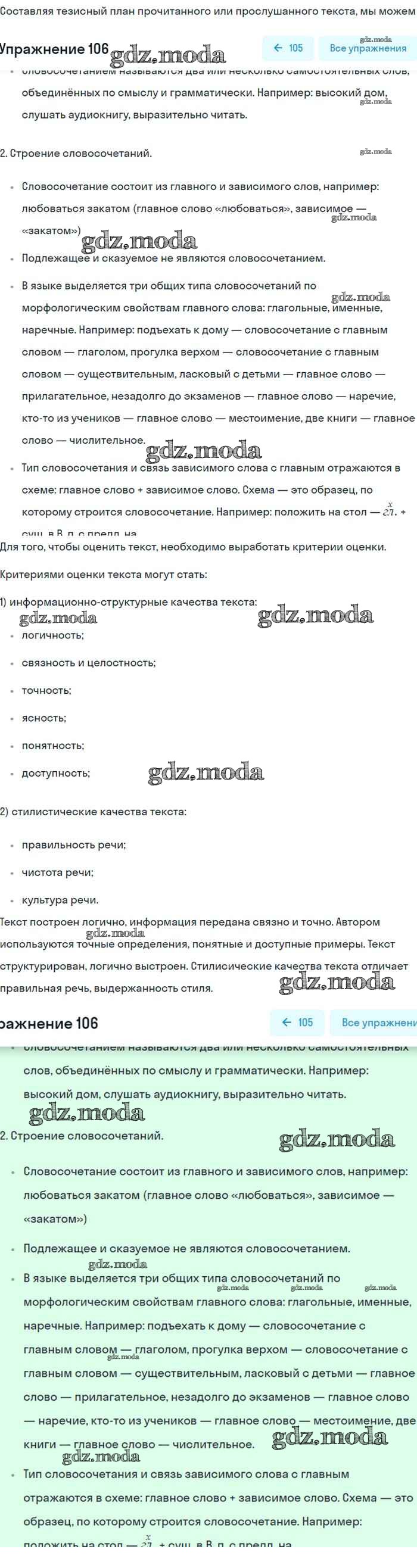 ГДЗ решение к заданию № 106 Русский язык 8 класс Бархударов С.Г. Просвещение 2018 ФГОС бесплатно на гдз.мода!