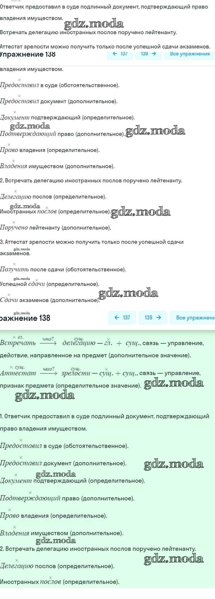 ОТВЕТ на задание № 138 Учебник по Русскому языку 8 класс Бархударов