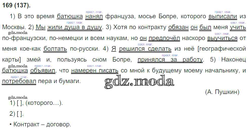 ОТВЕТ на задание № 169 Учебник по Русскому языку 8 класс Бархударов