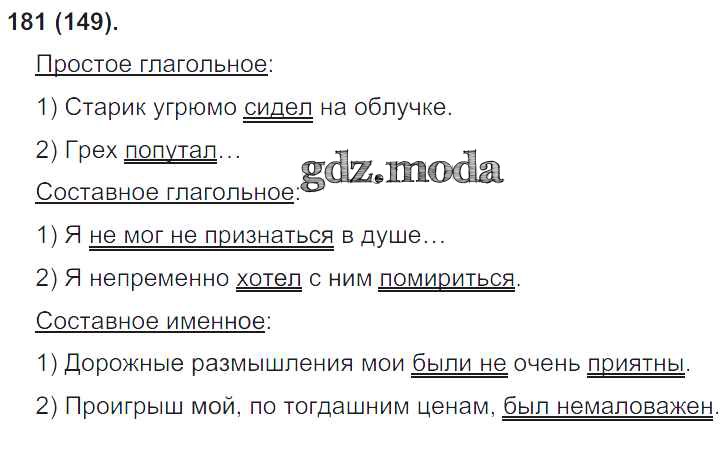 ОТВЕТ на задание № 181 Учебник по Русскому языку 8 класс Бархударов