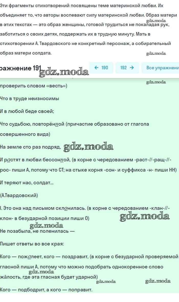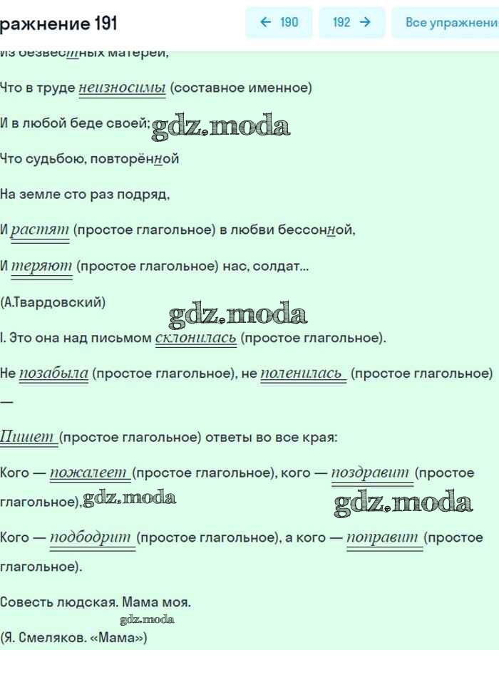 ГДЗ решение к заданию № 191 Русский язык 8 класс Бархударов С.Г. Просвещение 2018 ФГОС бесплатно на гдз.мода!