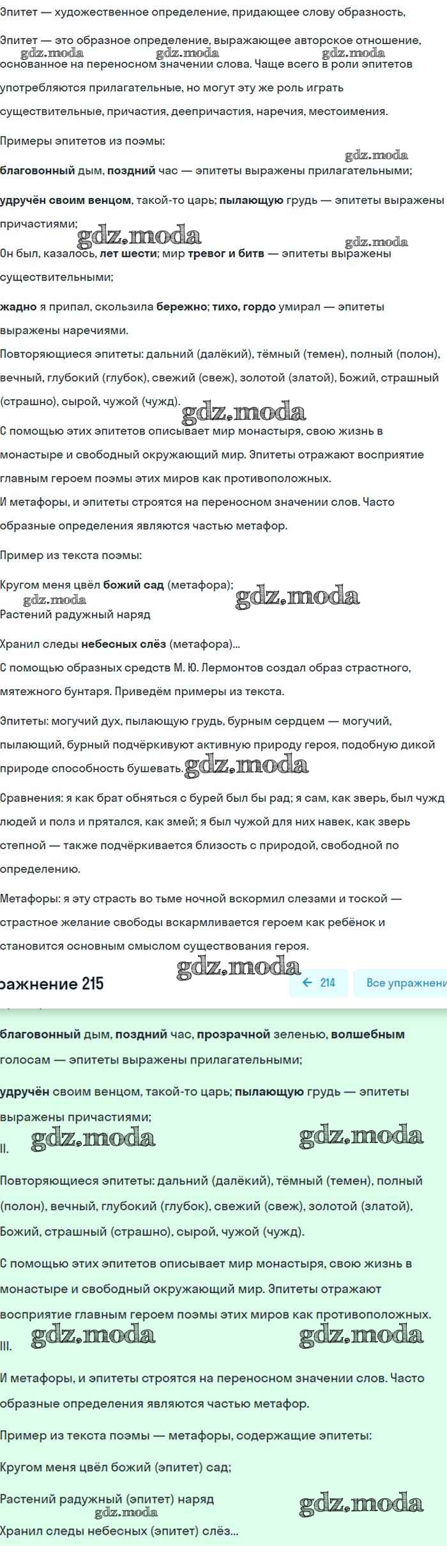 ГДЗ решение к заданию № 215 Русский язык 8 класс Бархударов С.Г. Просвещение 2018 ФГОС бесплатно на гдз.мода!