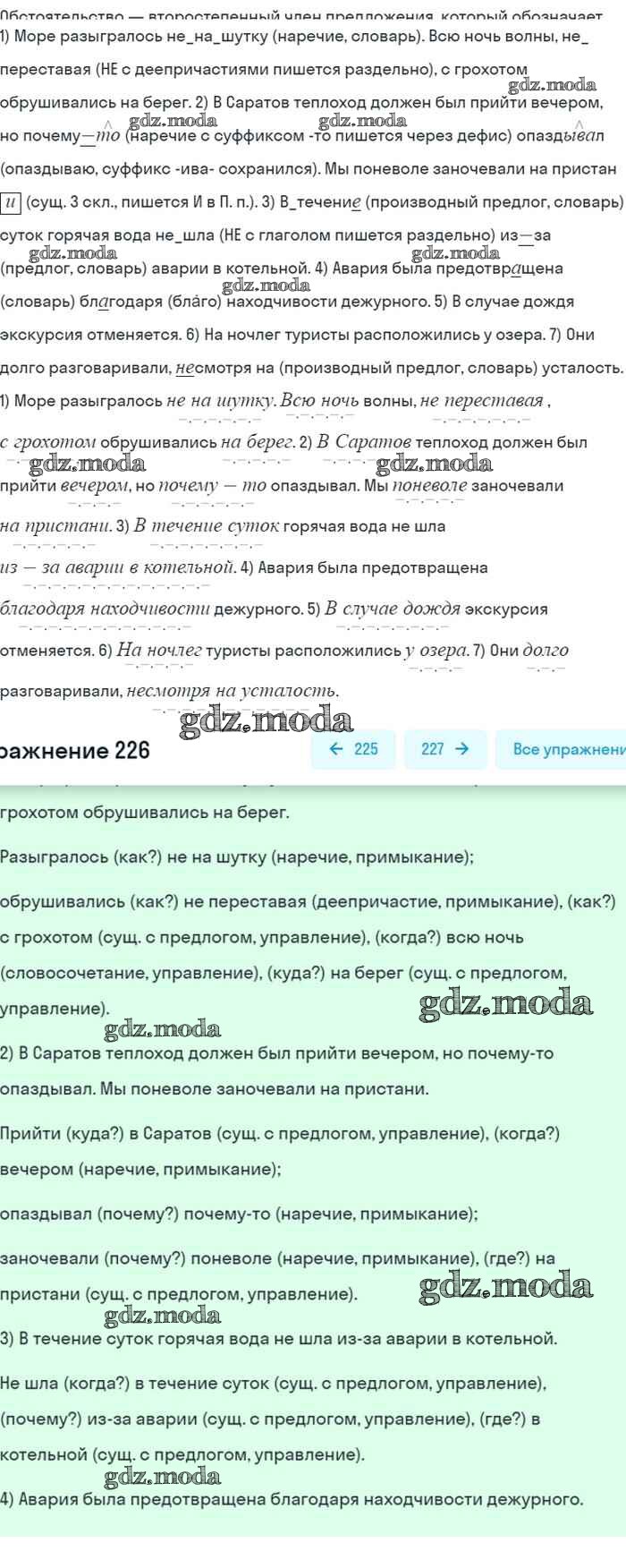 ОТВЕТ на задание № 226 Учебник по Русскому языку 8 класс Бархударов