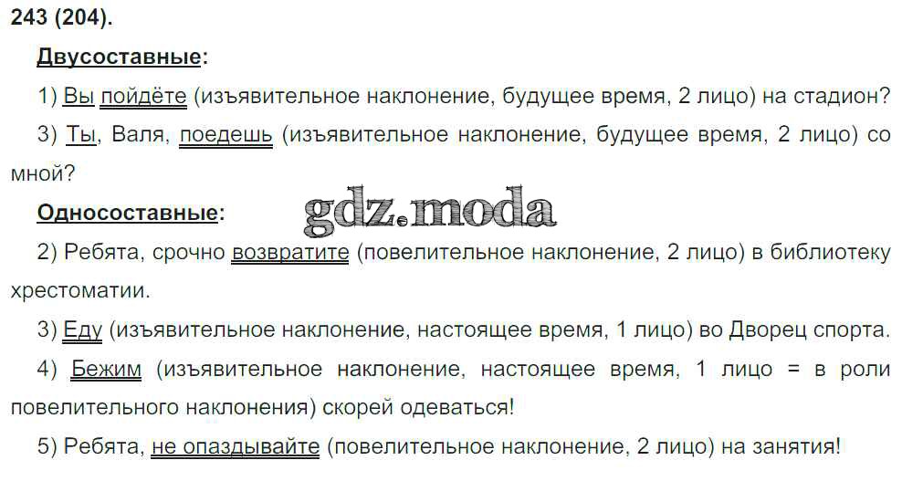 ОТВЕТ на задание № 243 Учебник по Русскому языку 8 класс Бархударов