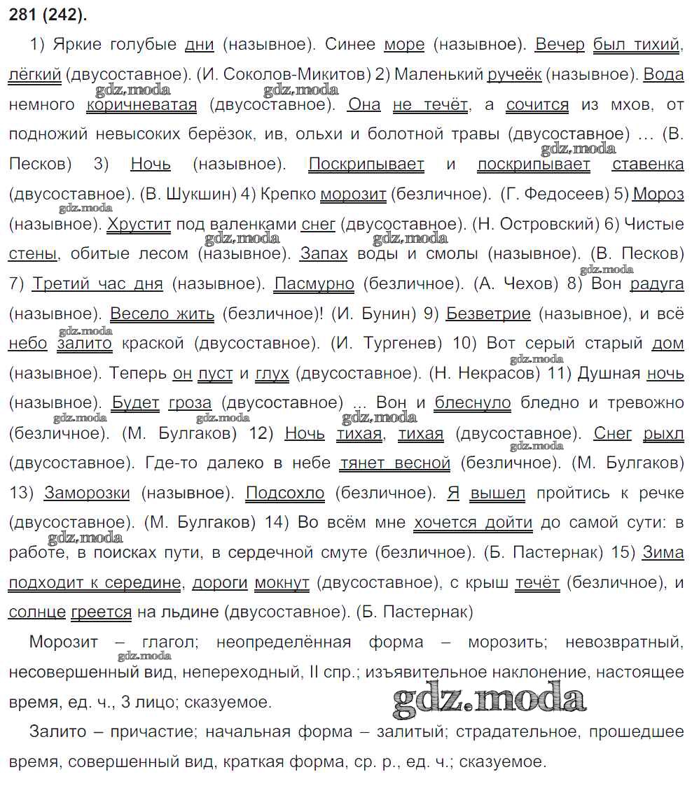 ГДЗ решение к заданию № 281 Русский язык 8 класс Бархударов Просвещение 2018 ФГОС бесплатно на гдз.мода!