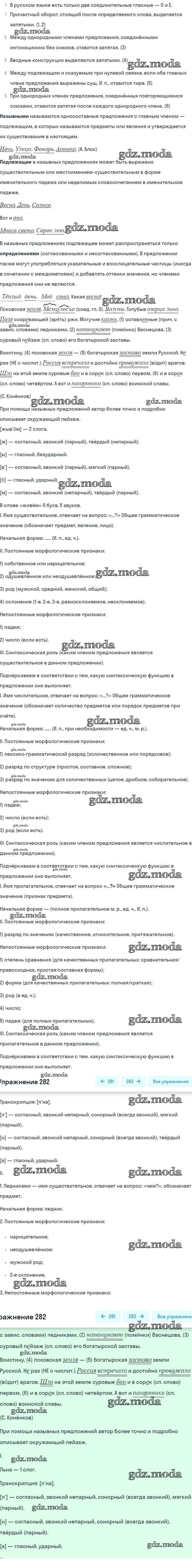 ГДЗ решение к заданию № 282 Русский язык 8 класс Бархударов С.Г. Просвещение 2018 ФГОС бесплатно на гдз.мода!