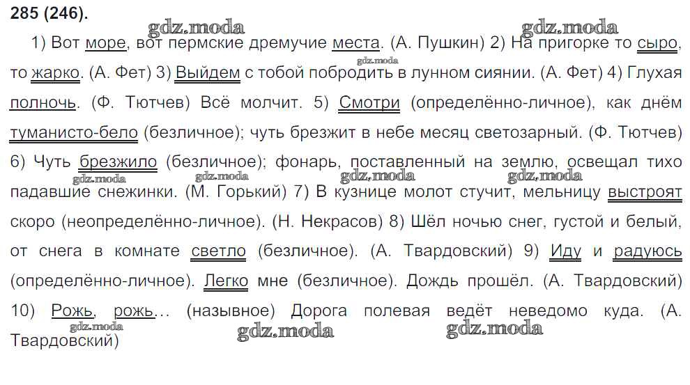 ОТВЕТ на задание № 285 Учебник по Русскому языку 8 класс Бархударов