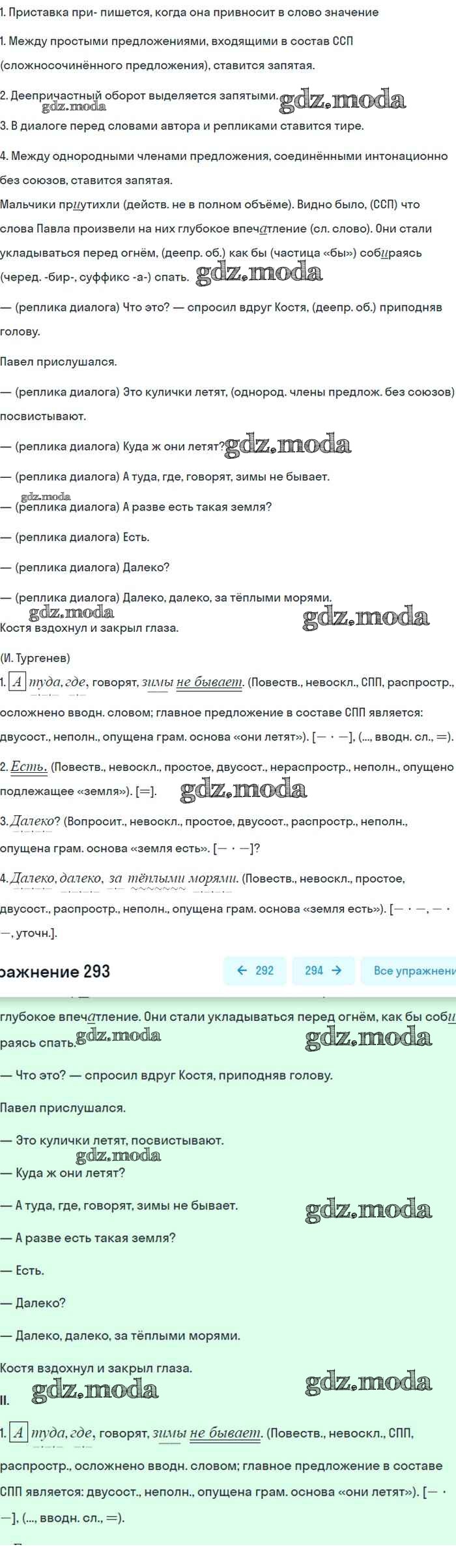 ОТВЕТ на задание № 293 Учебник по Русскому языку 8 класс Бархударов