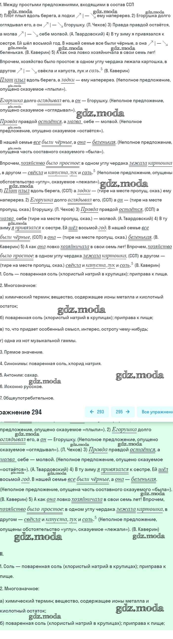 ОТВЕТ на задание № 294 Учебник по Русскому языку 8 класс Бархударов