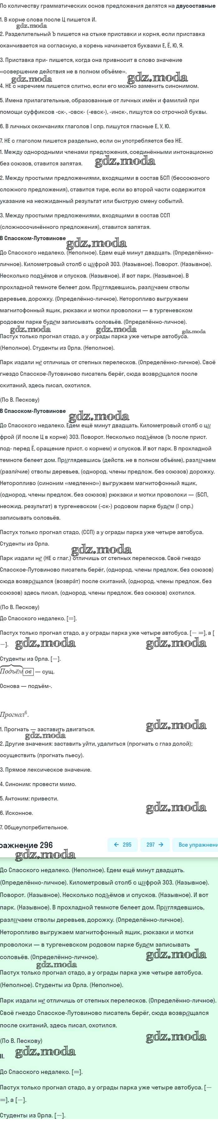 ОТВЕТ на задание № 296 Учебник по Русскому языку 8 класс Бархударов