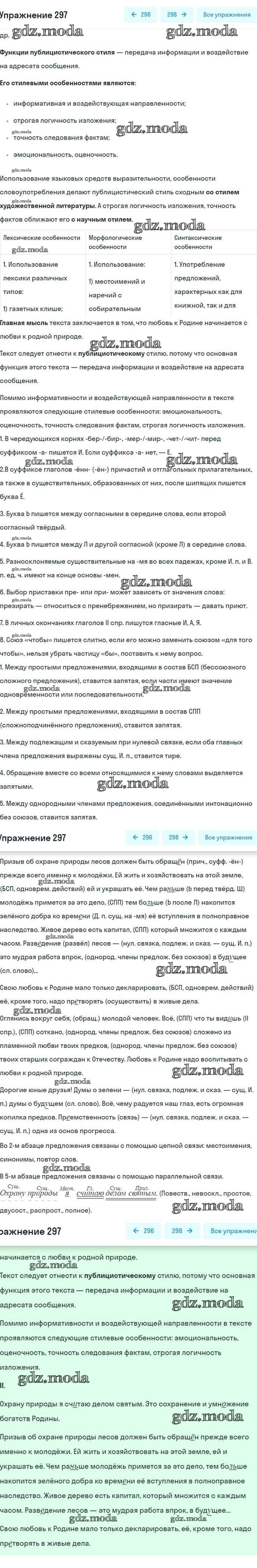 ОТВЕТ на задание № 297 Учебник по Русскому языку 8 класс Бархударов