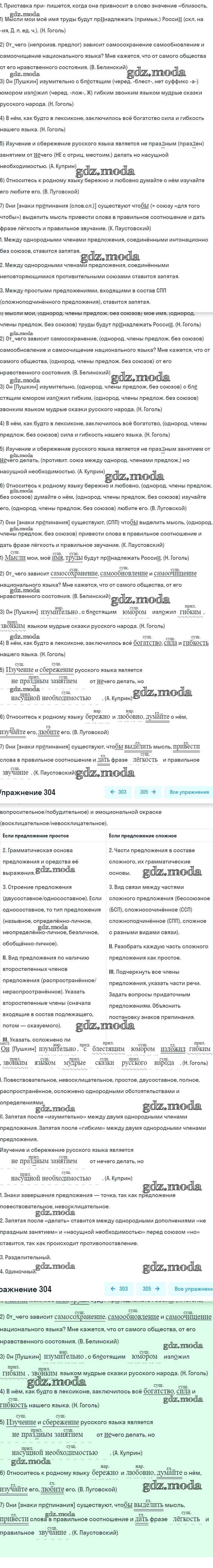 ГДЗ решение к заданию № 304 Русский язык 8 класс Бархударов С.Г. Просвещение 2018 ФГОС бесплатно на гдз.мода!
