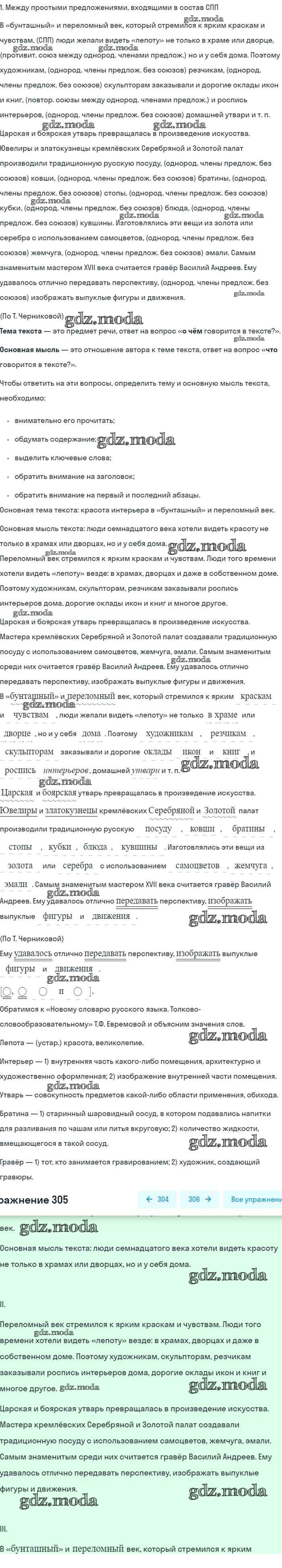 ОТВЕТ на задание № 305 Учебник по Русскому языку 8 класс Бархударов