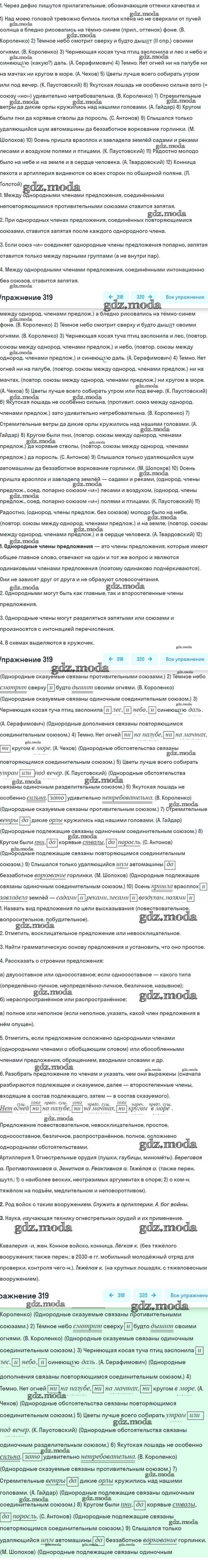 ГДЗ решение к заданию № 319 Русский язык 8 класс Бархударов С.Г. Просвещение 2018 ФГОС бесплатно на гдз.мода!