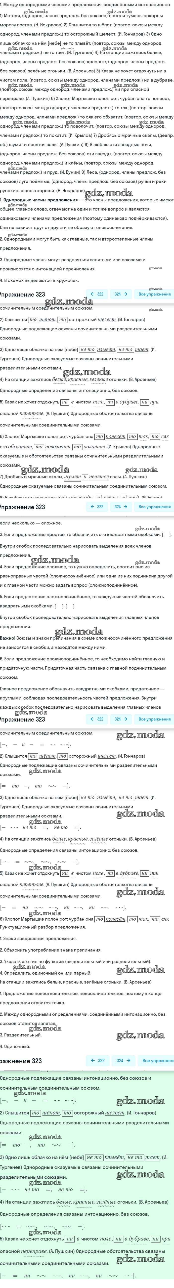 ОТВЕТ на задание № 323 Учебник по Русскому языку 8 класс Бархударов