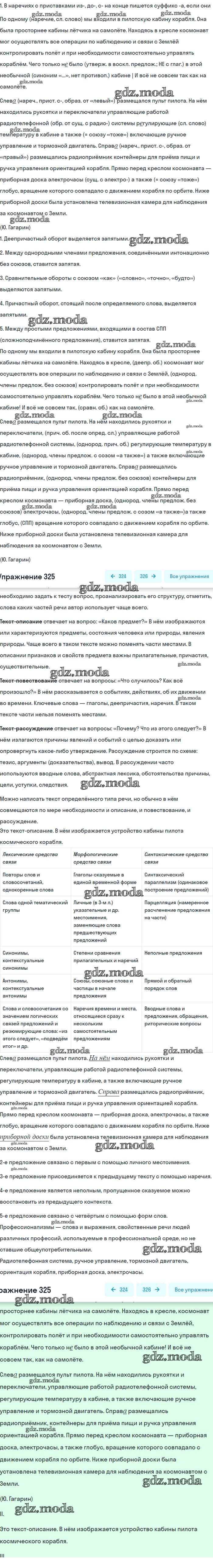ОТВЕТ на задание № 325 Учебник по Русскому языку 8 класс Бархударов