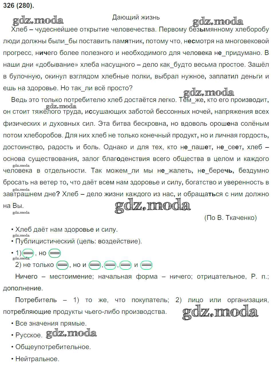 ОТВЕТ на задание № 326 Учебник по Русскому языку 8 класс Бархударов