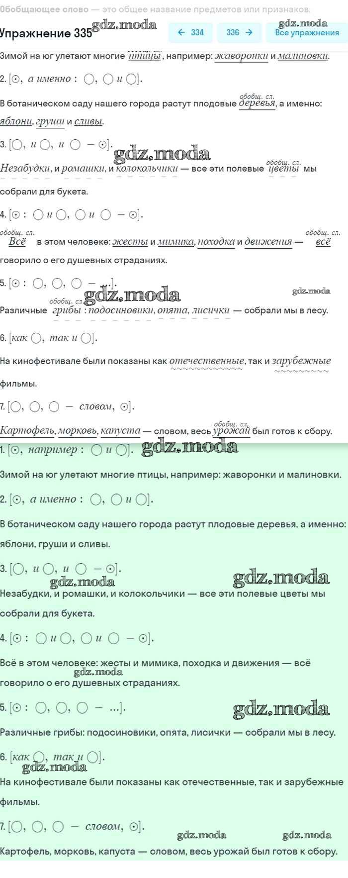 ГДЗ решение к заданию № 335 Русский язык 8 класс Бархударов С.Г. Просвещение 2018 ФГОС бесплатно на гдз.мода!