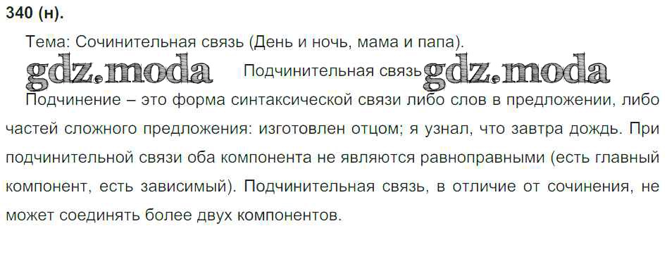 ГДЗ решение к заданию № 340 Русский язык 8 класс Бархударов Просвещение 2018 ФГОС бесплатно на гдз.мода!