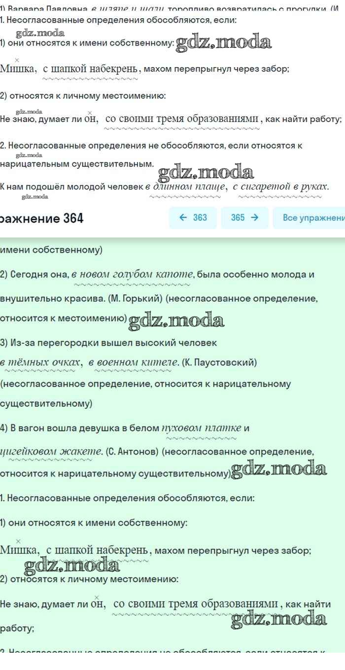 ГДЗ решение к заданию № 364 Русский язык 8 класс Бархударов С.Г. Просвещение 2018 ФГОС бесплатно на гдз.мода!