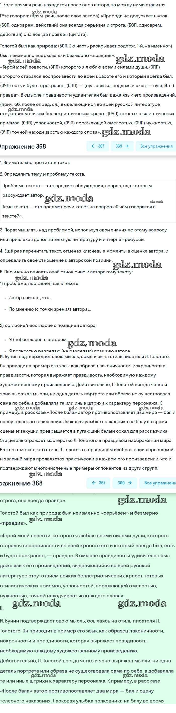 ОТВЕТ на задание № 368 Учебник по Русскому языку 8 класс Бархударов