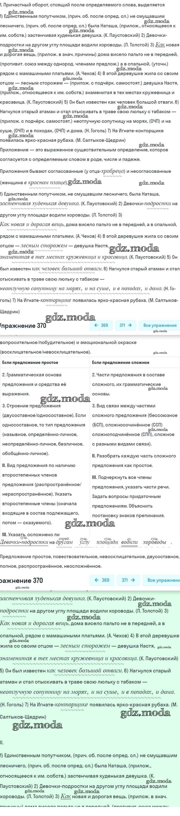 ГДЗ решение к заданию № 370 Русский язык 8 класс Бархударов С.Г. Просвещение 2018 ФГОС бесплатно на гдз.мода!