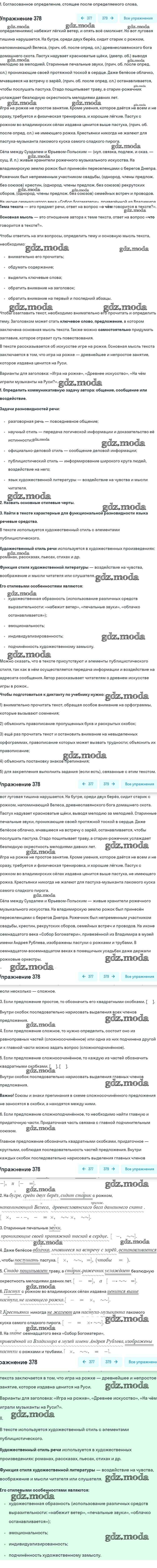 ОТВЕТ на задание № 378 Учебник по Русскому языку 8 класс Бархударов