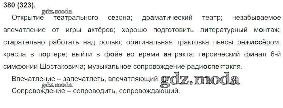 ОТВЕТ на задание № 380 Учебник по Русскому языку 8 класс Бархударов