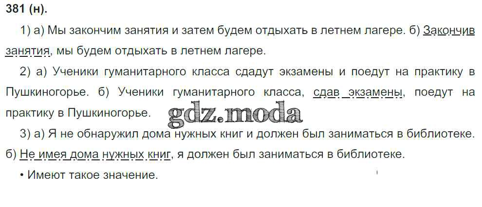 ОТВЕТ на задание № 381 Учебник по Русскому языку 8 класс Бархударов