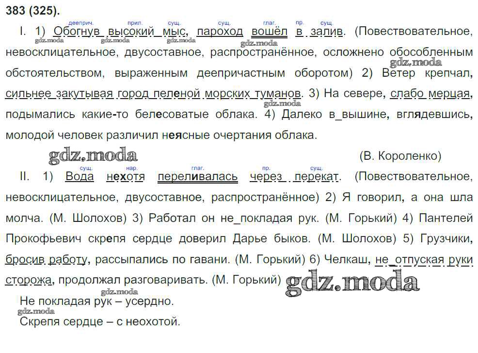 ОТВЕТ на задание № 383 Учебник по Русскому языку 8 класс Бархударов