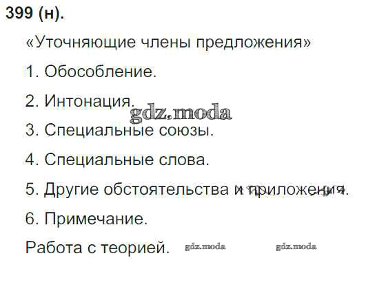 ГДЗ решение к заданию № 399 Русский язык 8 класс Бархударов Просвещение 2018 ФГОС бесплатно на гдз.мода!