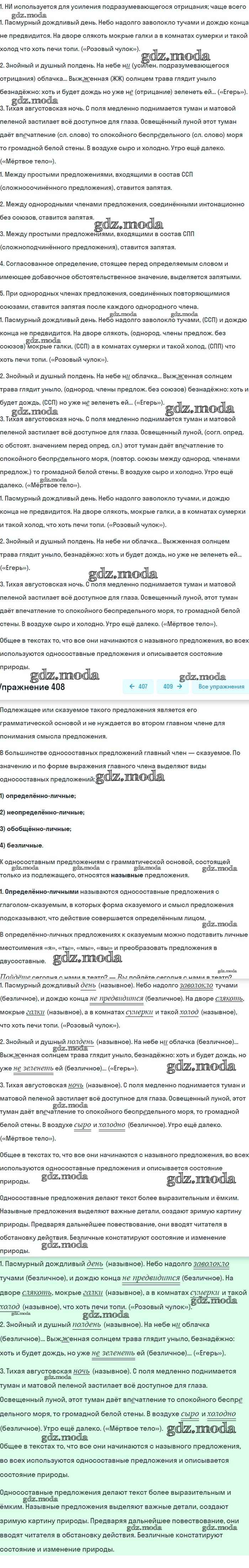ГДЗ решение к заданию № 408 Русский язык 8 класс Бархударов С.Г. Просвещение 2018 ФГОС бесплатно на гдз.мода!