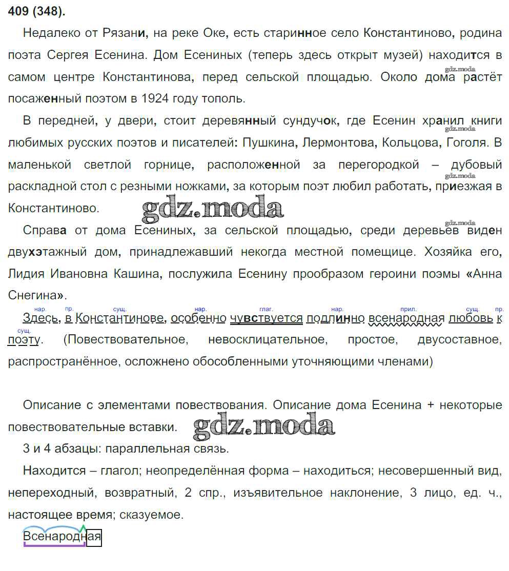 ОТВЕТ на задание № 409 Учебник по Русскому языку 8 класс Бархударов