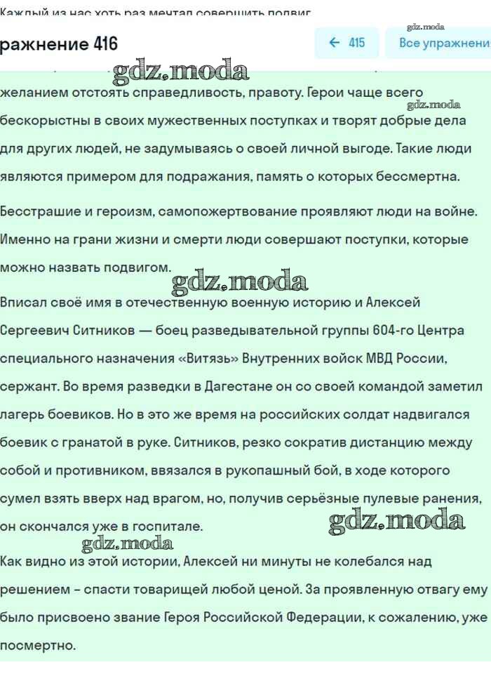 ОТВЕТ на задание № 416 Учебник по Русскому языку 8 класс Бархударов