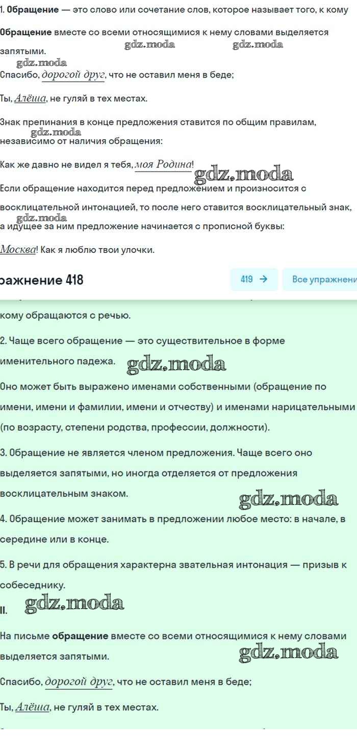 ОТВЕТ на задание № 418 Учебник по Русскому языку 8 класс Бархударов