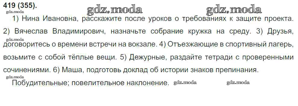 ОТВЕТ на задание № 419 Учебник по Русскому языку 8 класс Бархударов