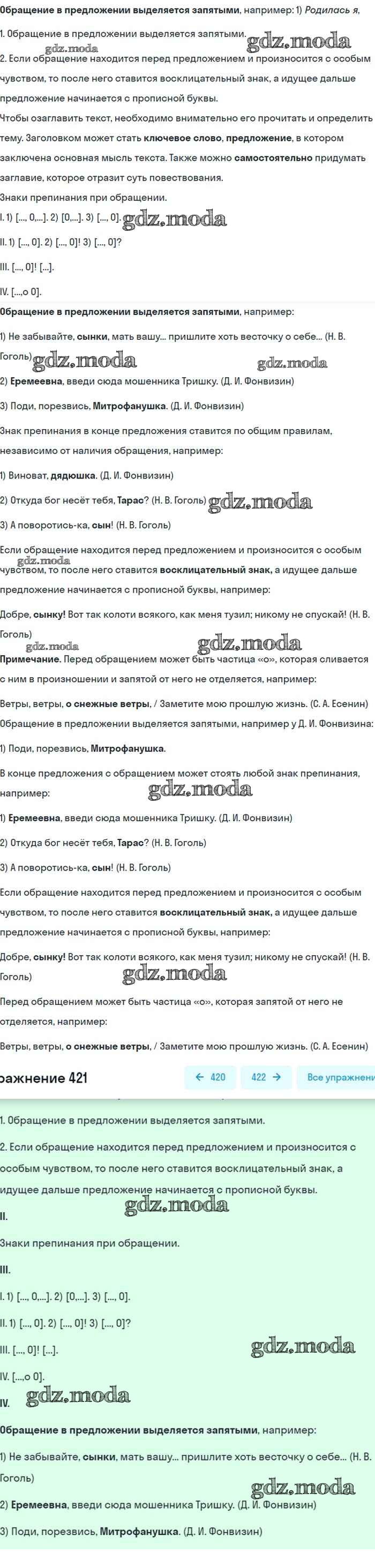 ОТВЕТ на задание № 421 Учебник по Русскому языку 8 класс Бархударов