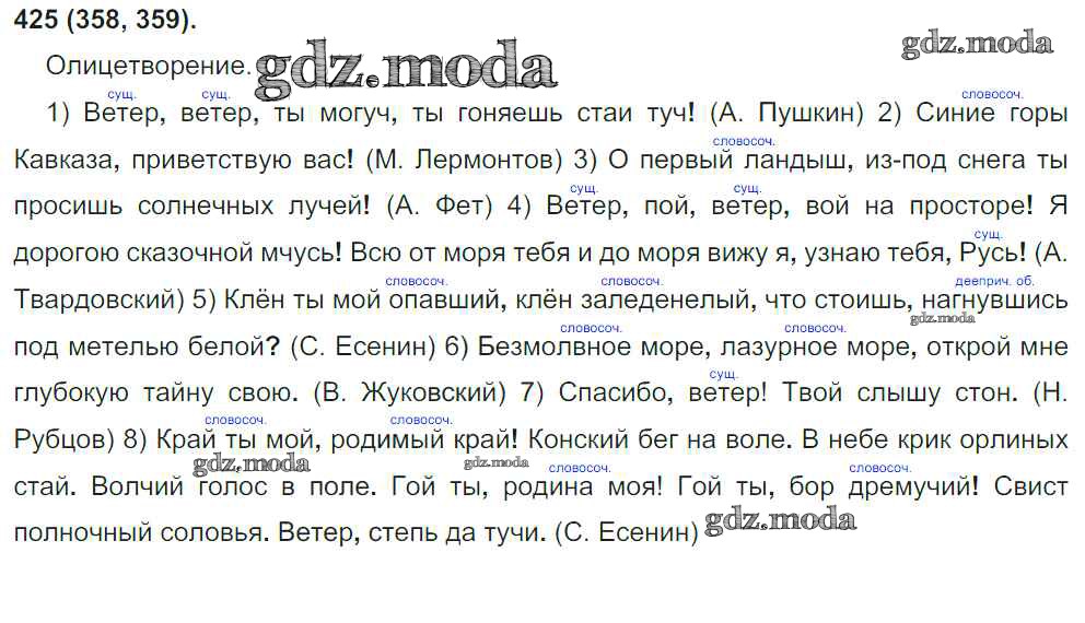 ОТВЕТ на задание № 425 Учебник по Русскому языку 8 класс Бархударов