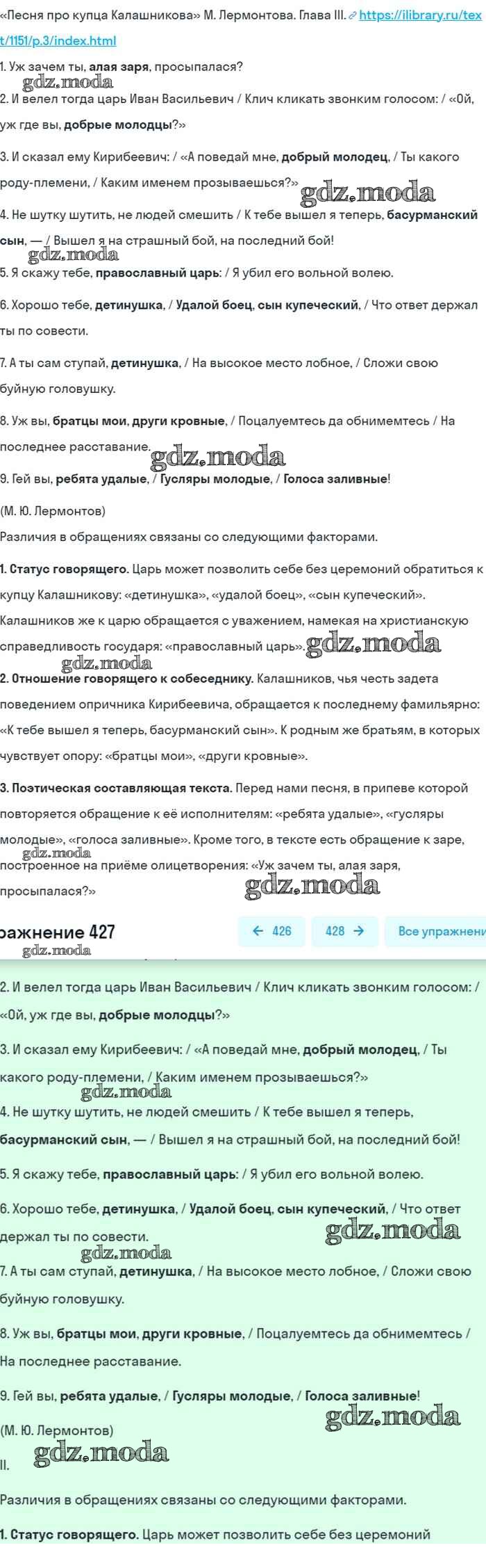 ОТВЕТ на задание № 427 Учебник по Русскому языку 8 класс Бархударов