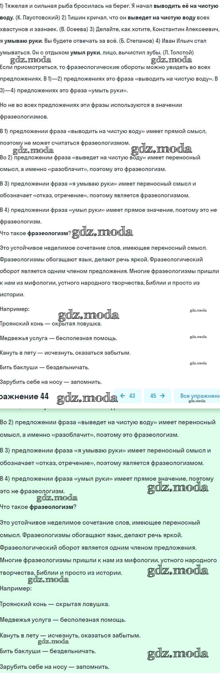 ГДЗ решение к заданию № 44 Русский язык 8 класс Бархударов С.Г. Просвещение 2018 ФГОС бесплатно на гдз.мода!