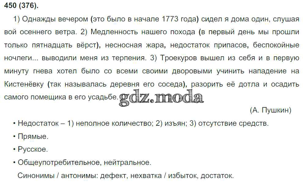 ОТВЕТ на задание № 450 Учебник по Русскому языку 8 класс Бархударов