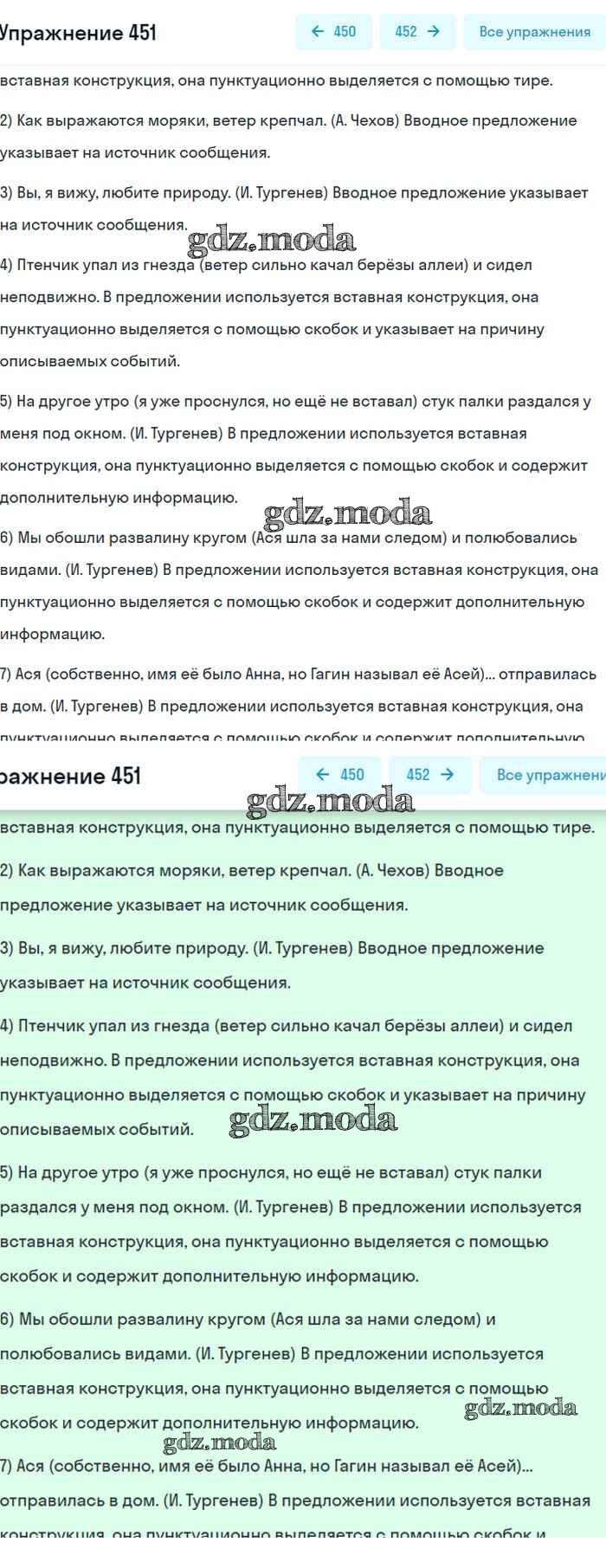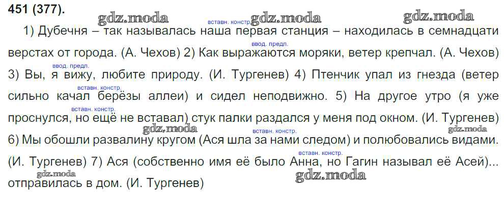 ОТВЕТ на задание № 451 Учебник по Русскому языку 8 класс Бархударов