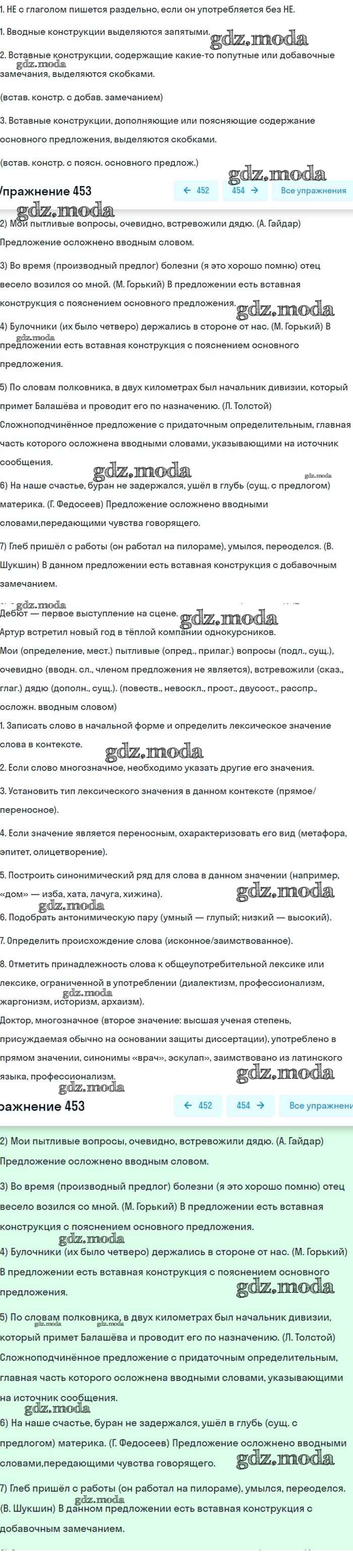 ОТВЕТ на задание № 453 Учебник по Русскому языку 8 класс Бархударов