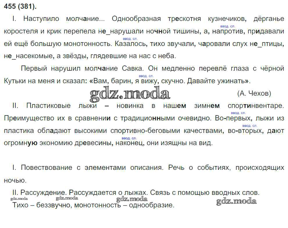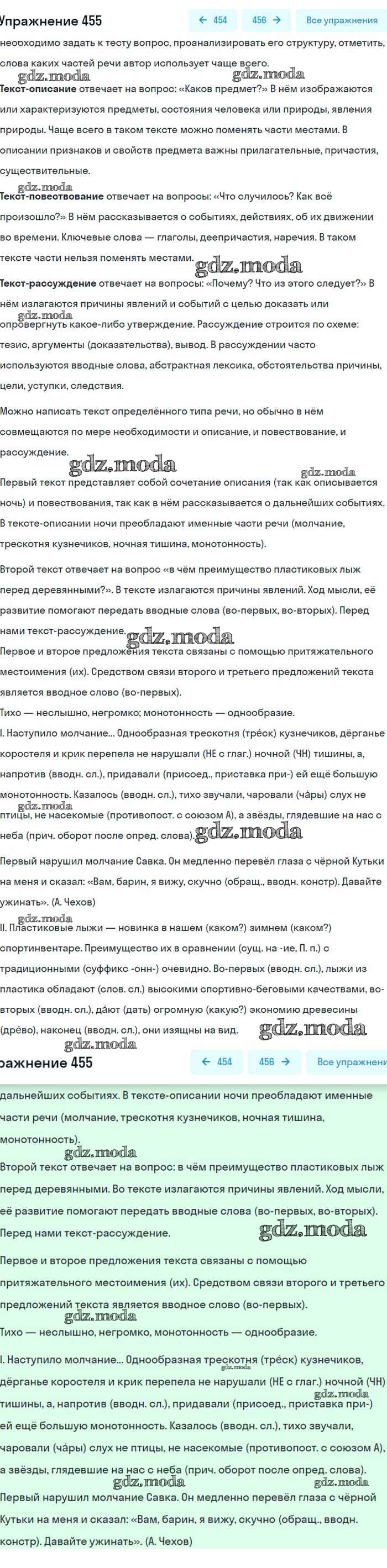 ОТВЕТ на задание № 455 Учебник по Русскому языку 8 класс Бархударов